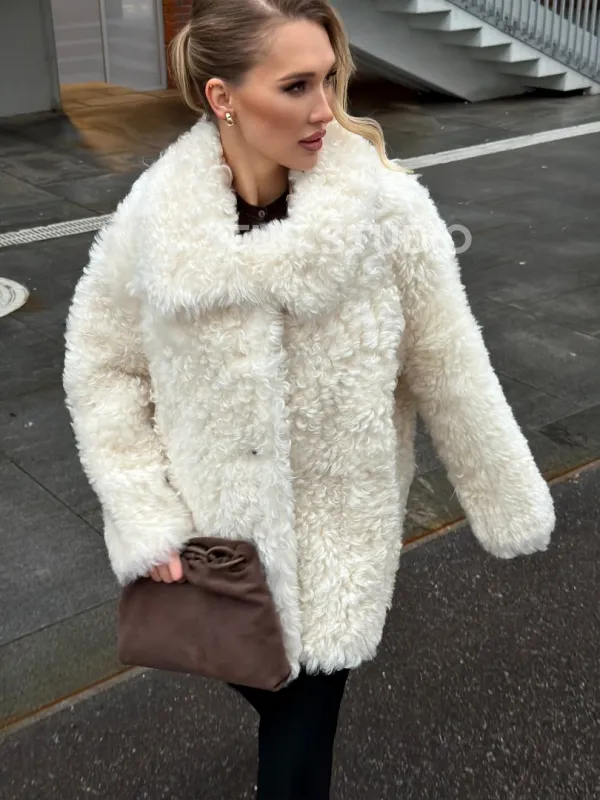 Белая шубка из тиградо. Модель предлагается в размерах от 42 до 48. Оптимальная длина моделей 70-75 см подчеркивает линии вашей фигуры. Эта дубленка станет неотъемлемой частью гардероба для тех, кто предпочитает роскошь и утонченность натуральной кожи.