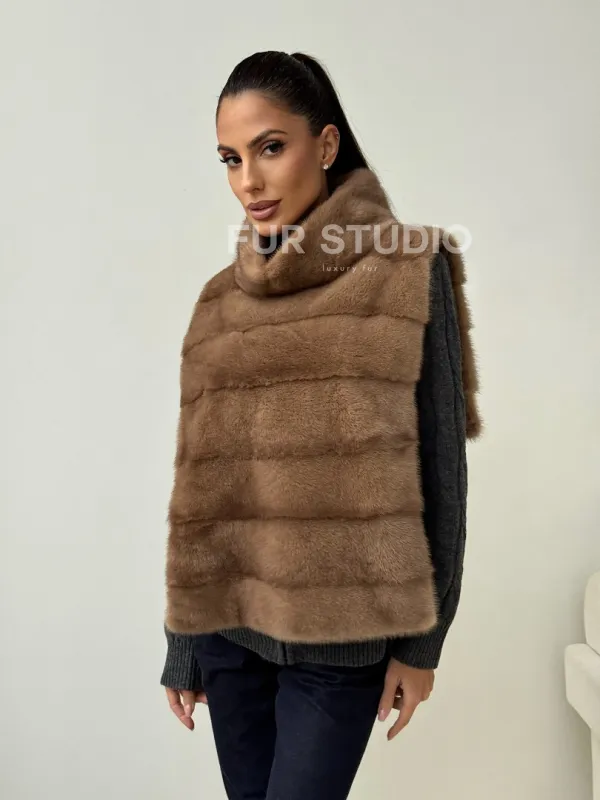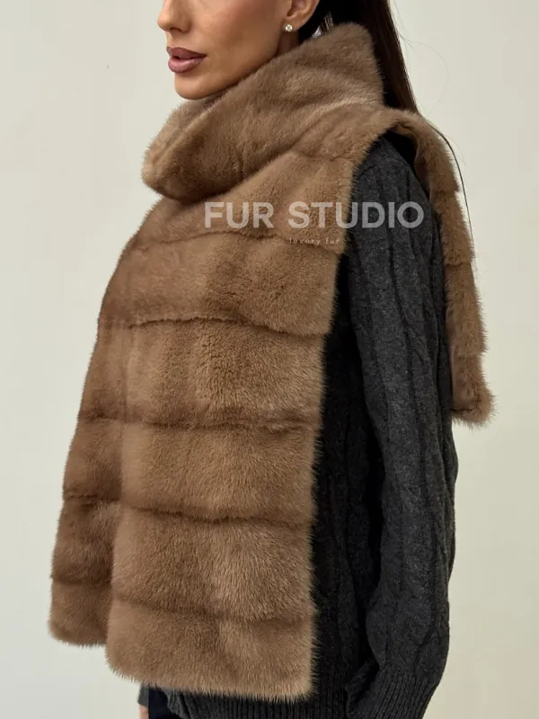 Бежевая норковая манишка 102425