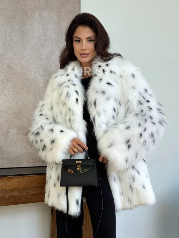 Шуба из лисы под рысь - белая 102329