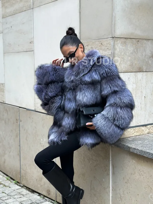 Мех данной шубы лиса, цвет серый. Предлагается в размерах от 42 до 50. Длина модели 60-65 см, что выгодно подчеркивает фигуру девушек. Эта модель идеально подойдет для девушек и женщин, предпочитающих роскошные натуральные меха.