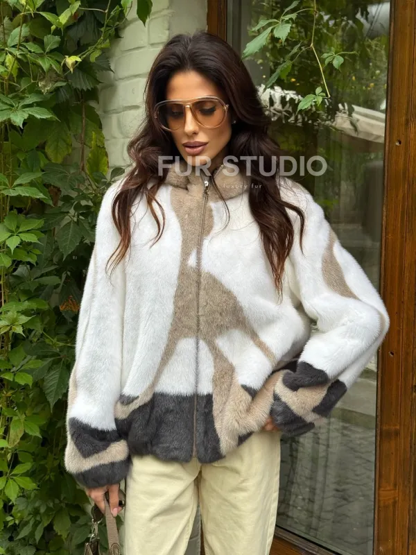 Стильная норковая куртка с капюшоном 100151